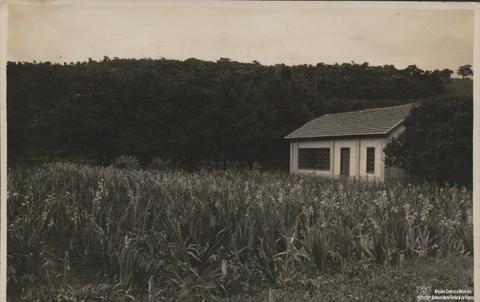 À esquerda Abrigo da Fitotecnia e à direita campo de plantação de flores.