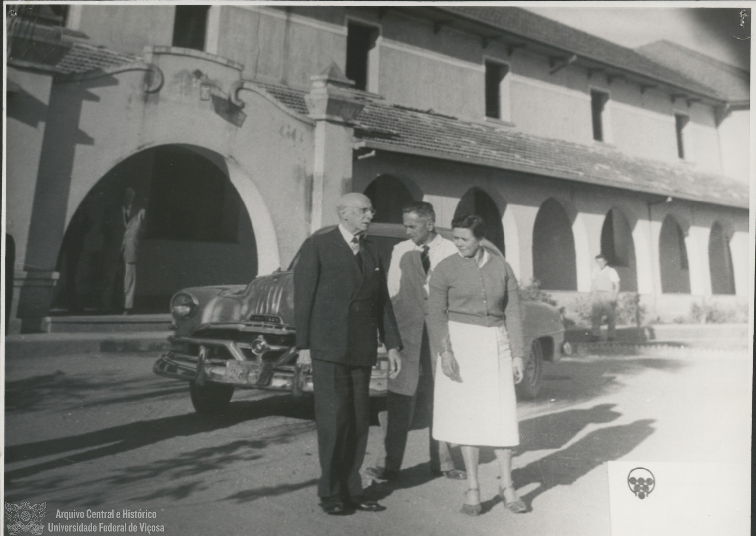 Presidente Arthur Bernardes, Dr. Raimundo Torres e D. Nanete Brandi na entrada do Patronato Agrícola.