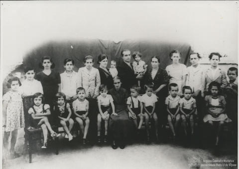 João José Araújo, Esther Araújo e filhos; D. Virgínia e filhos; Assentada no centro está D. Maria Rita (mãe de Sr. João e D. Virgínia).