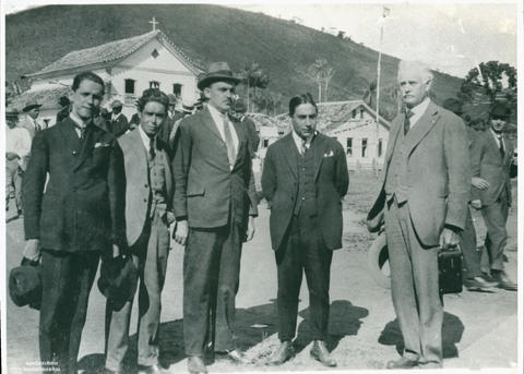 Autoridades da cidade de Viçosa em evento festivo não identificado. Da direita para esquerda, P. H. Rolfs, Drº Orico, Francisco Machado e José de Almeida Ramos.