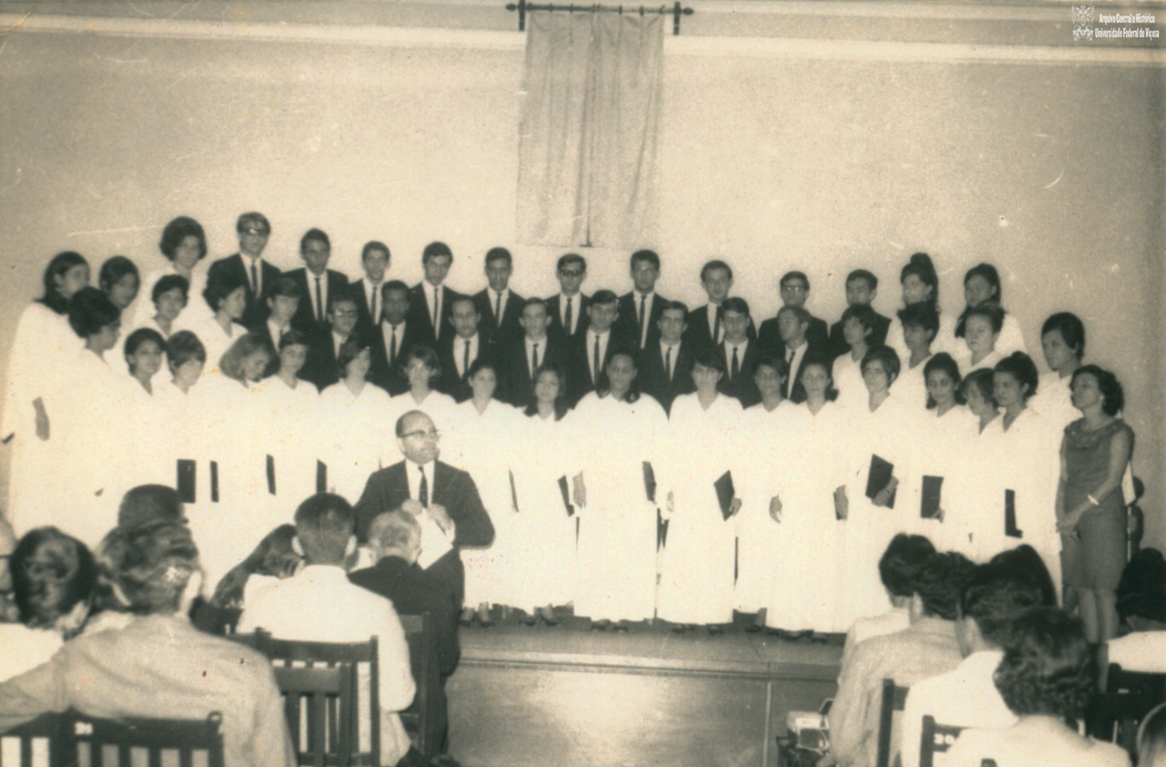 Coral, regido pelo Maestrina Maria do Carmo Tafuri, sendo anunciado pelo Reitor Edson Postch.
