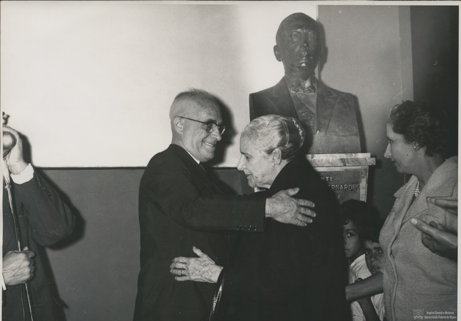 Lourenço Menicucci, Reitor da Uremg cumprimentando Dona Clélia, viuva de Arthur Bernardes.