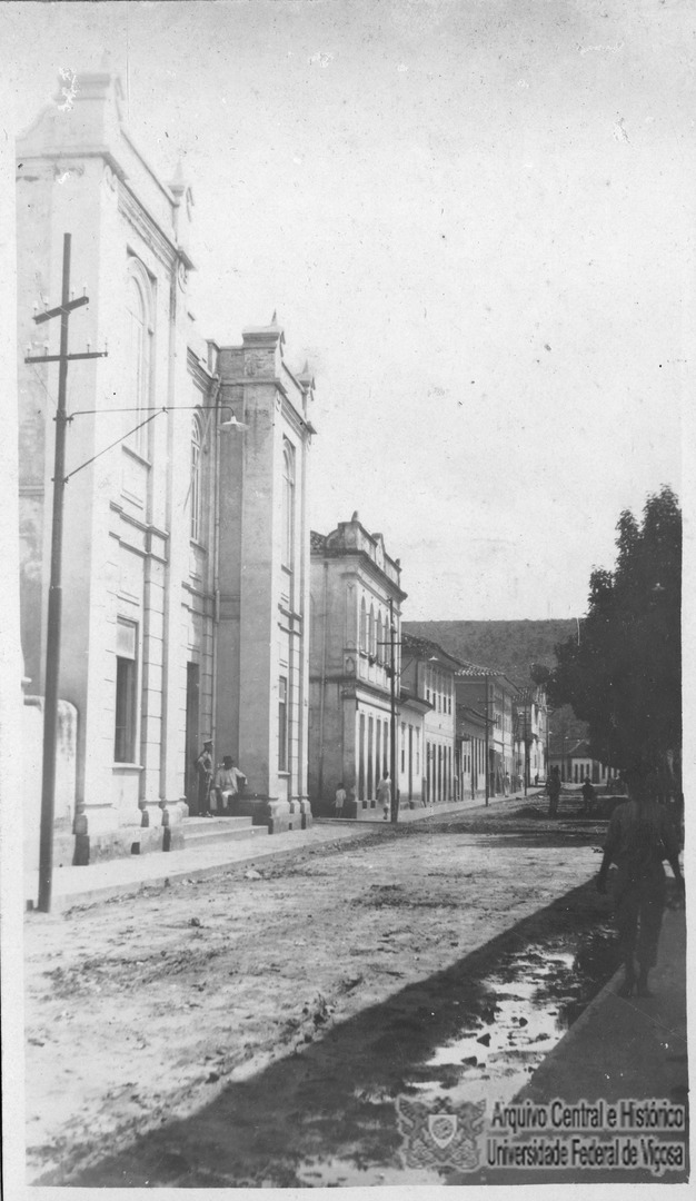 Na Rua Arthur Bernardes vê-se o antigo Fórum, o lado sul da Praça Silviano Brandão e o início da Rua do Comércio.