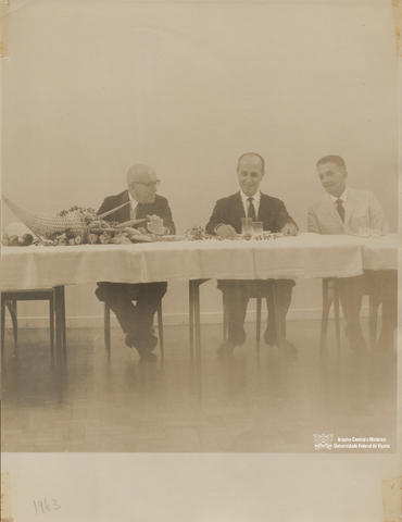 Almoço durante a 35ª edição da Semana do Fazendeiro com a presença de autoridades politicas, o primeiro, da esquerda, trata-se de Magalhães Pinto, então, Governador de Minas Gerais.