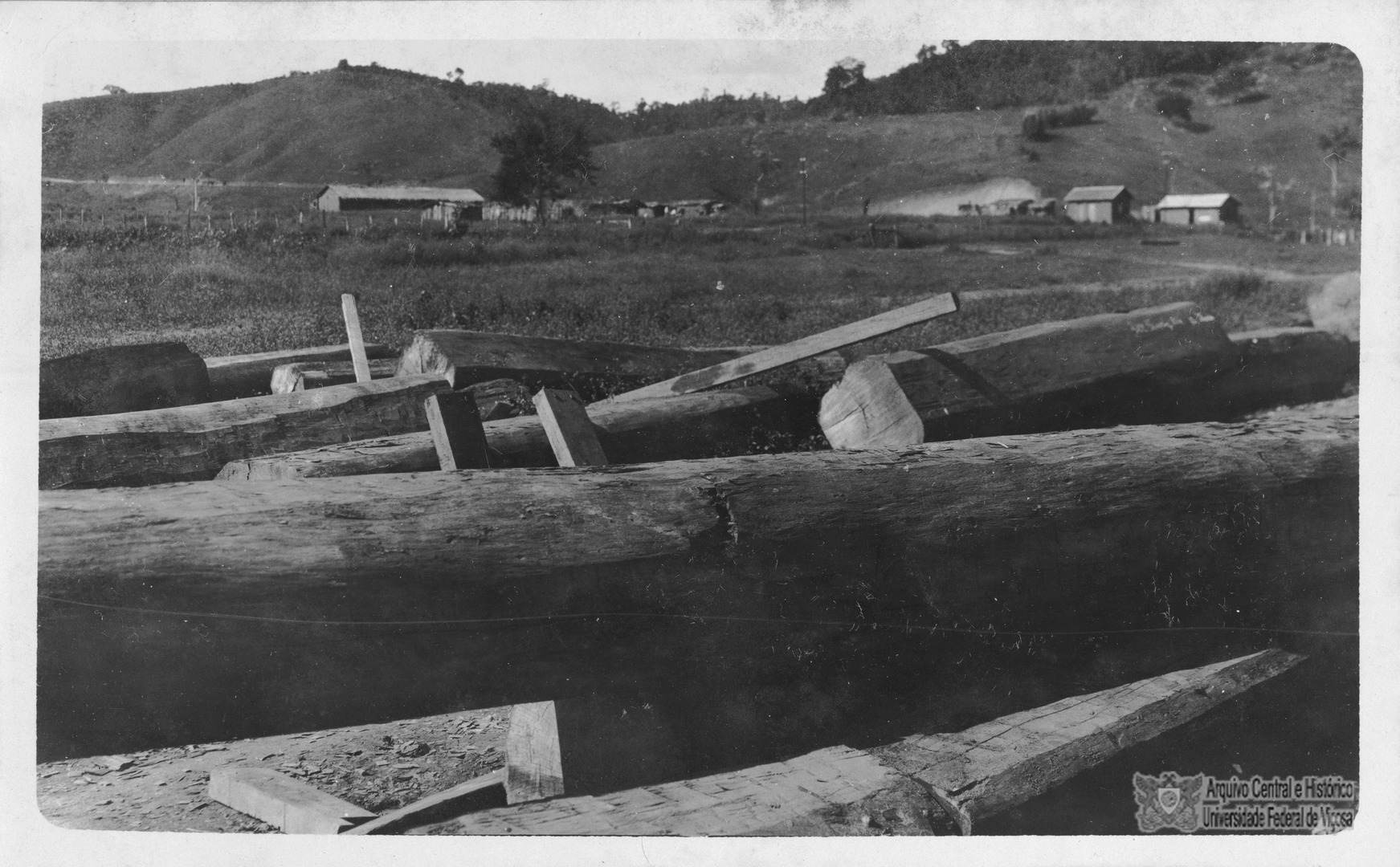 Toras de madeira que foram utilizadas na construção da ESAV.