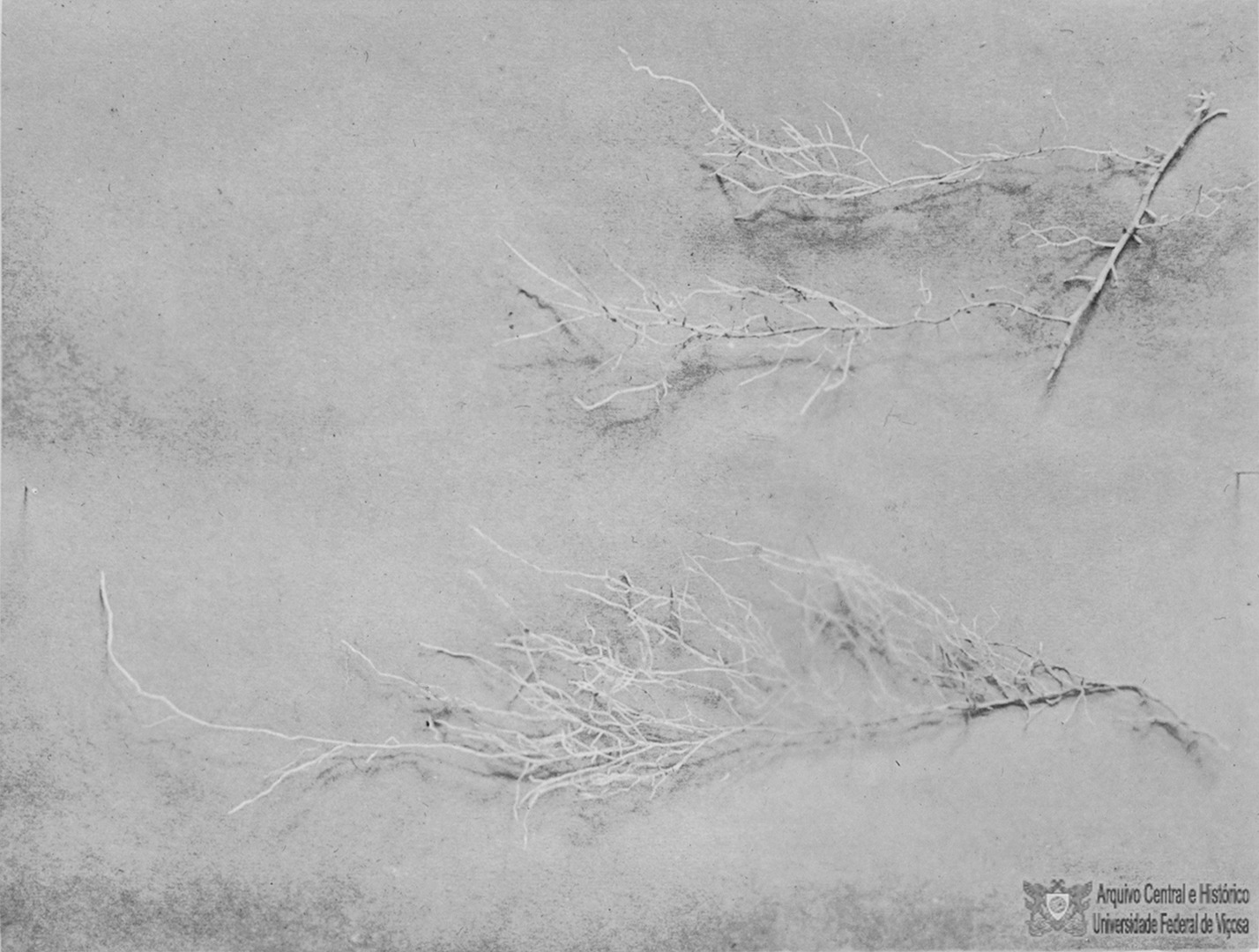 Raízes de planta desconhecida possivelmente sendo analisada.