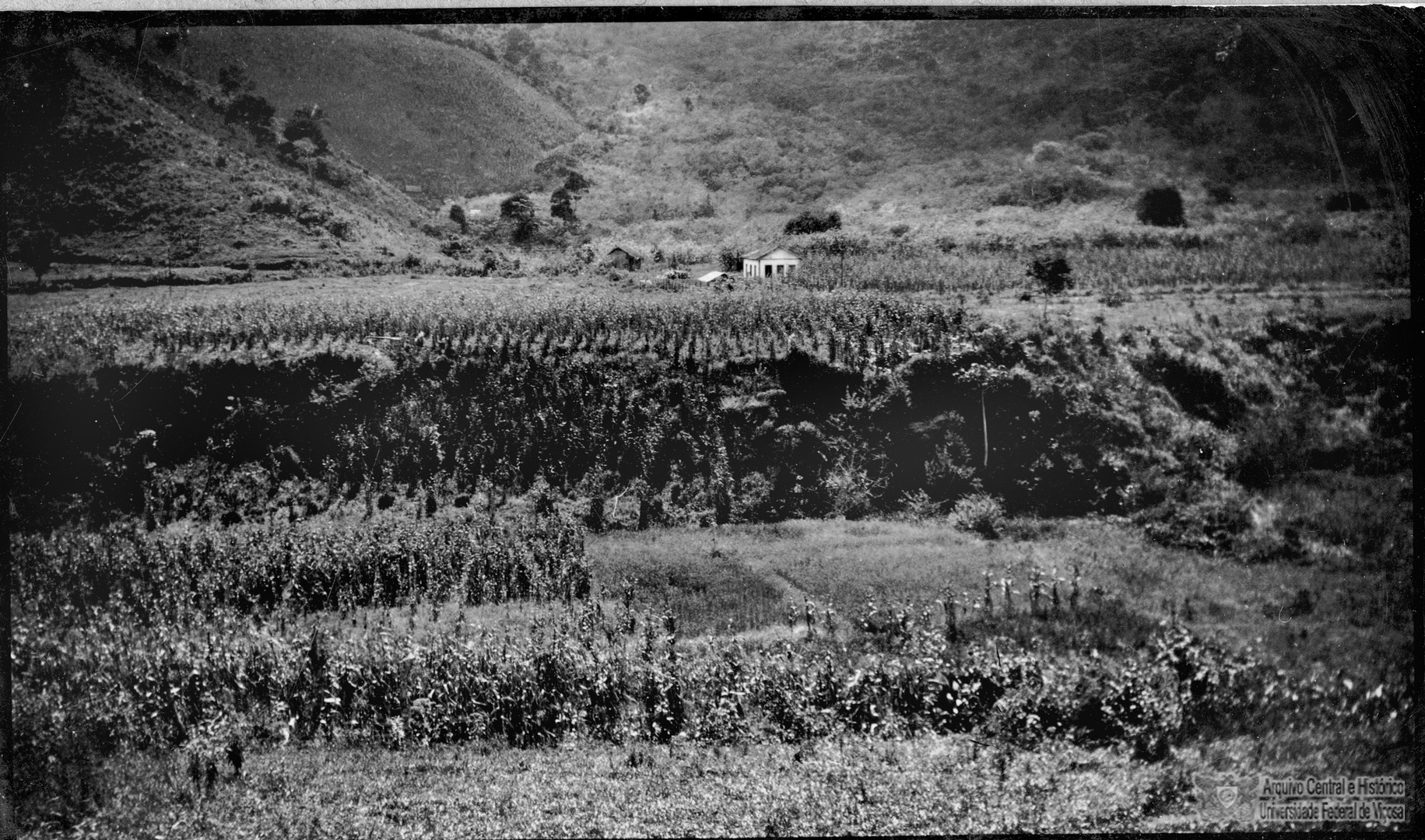 Vista, do centro do campus, na direção leste. Ao fundo uma casa desconhecida.