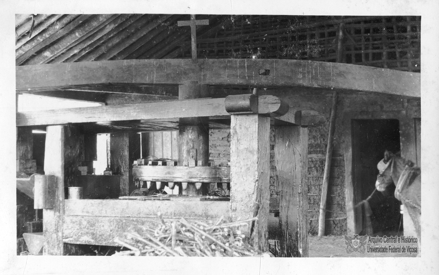 Engenho de cana para a fabricação de cachaça movido a tração animal.