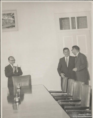 Reitor Edson Potsch Magalhães em reunião com a presença do americano Roy Bronson representante do projeto ETA 55 (Purdue x Uremg)