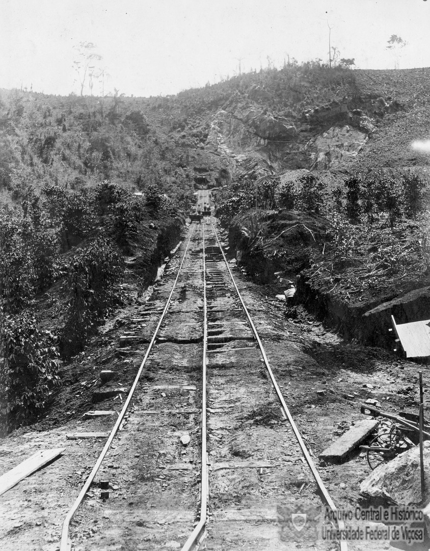 Trilhos utilizados para retirar pedras para a construção da ESAV.