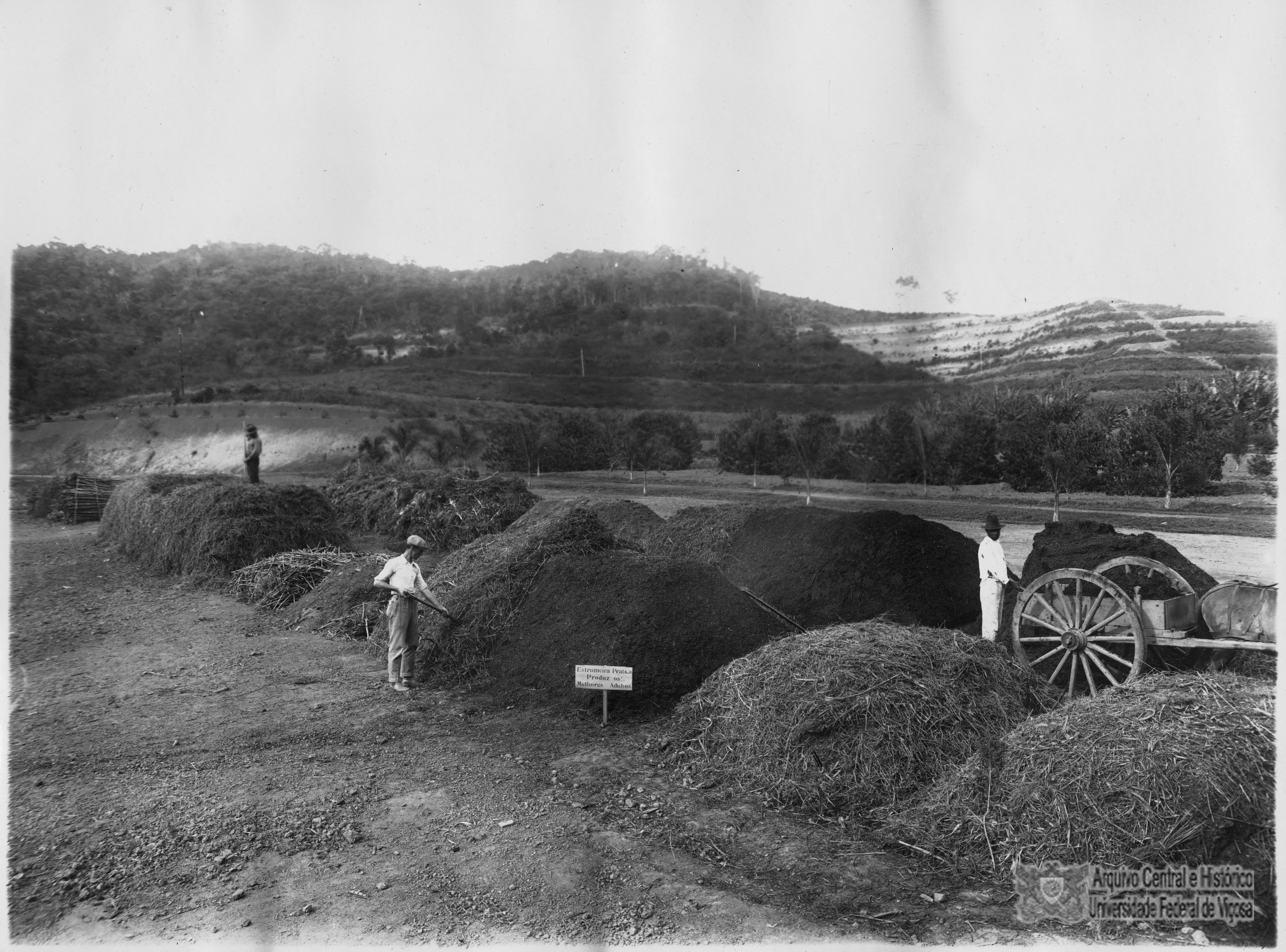 Estrumeira prática, utilizando restos de café, milho e outras culturas que são postos na estrumeira, misturados com esterco de gado, molhados e cobertos com palha, como proteção contra o sol e as chuvas. Depois de alguns meses, transformam-se em ótimos fertilizantes.