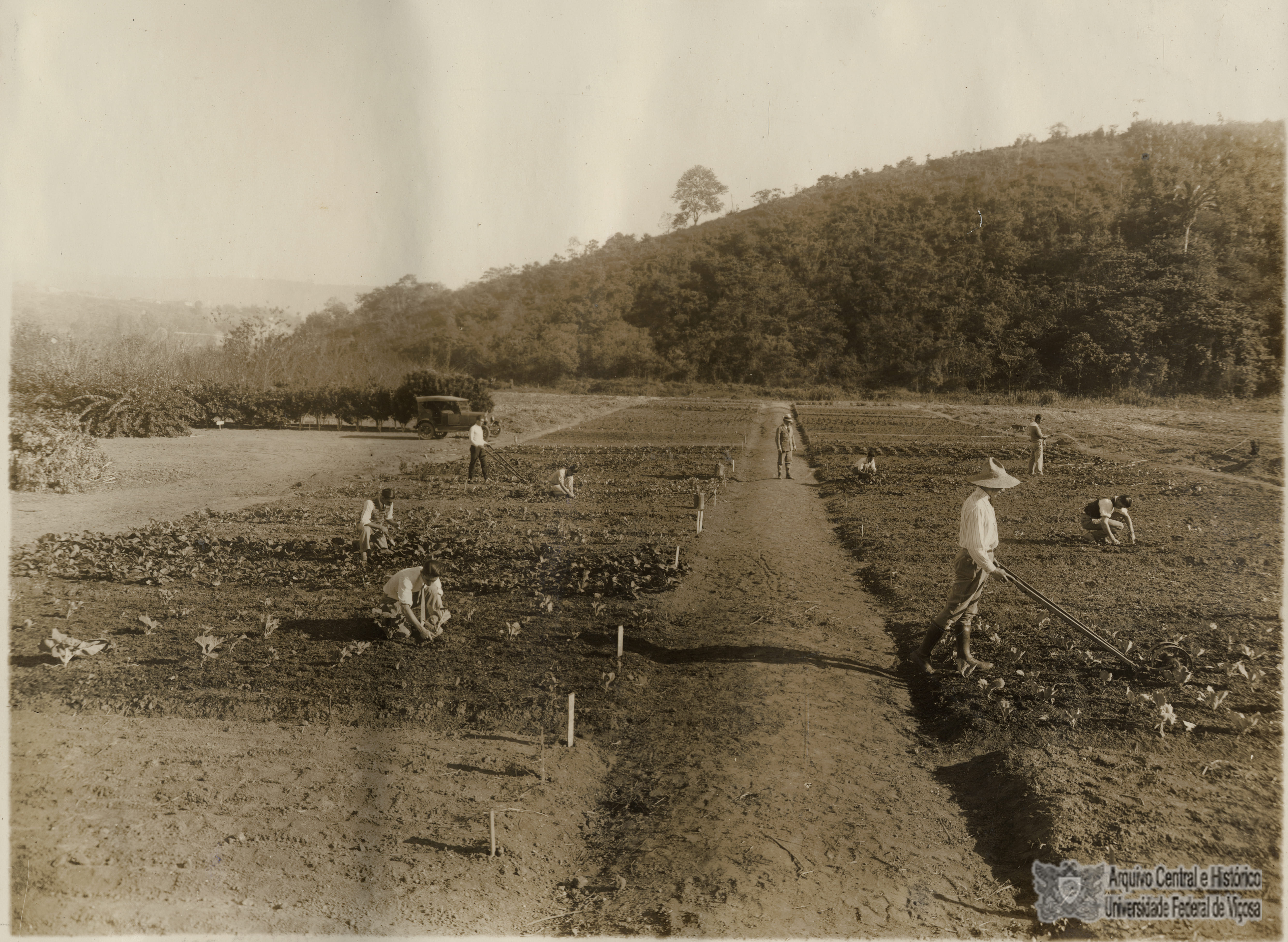 Aula prática do Professor Herman Rehaag na Horta da Escola, junto a funcionários da ESAV.