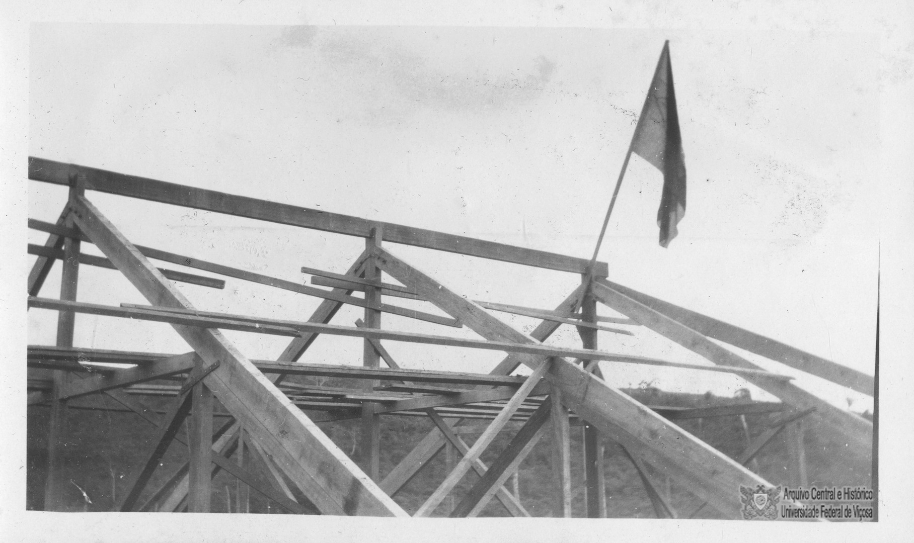 Bandeira Nacional hasteada no engradamento da cumeeira do Prédio Principal.