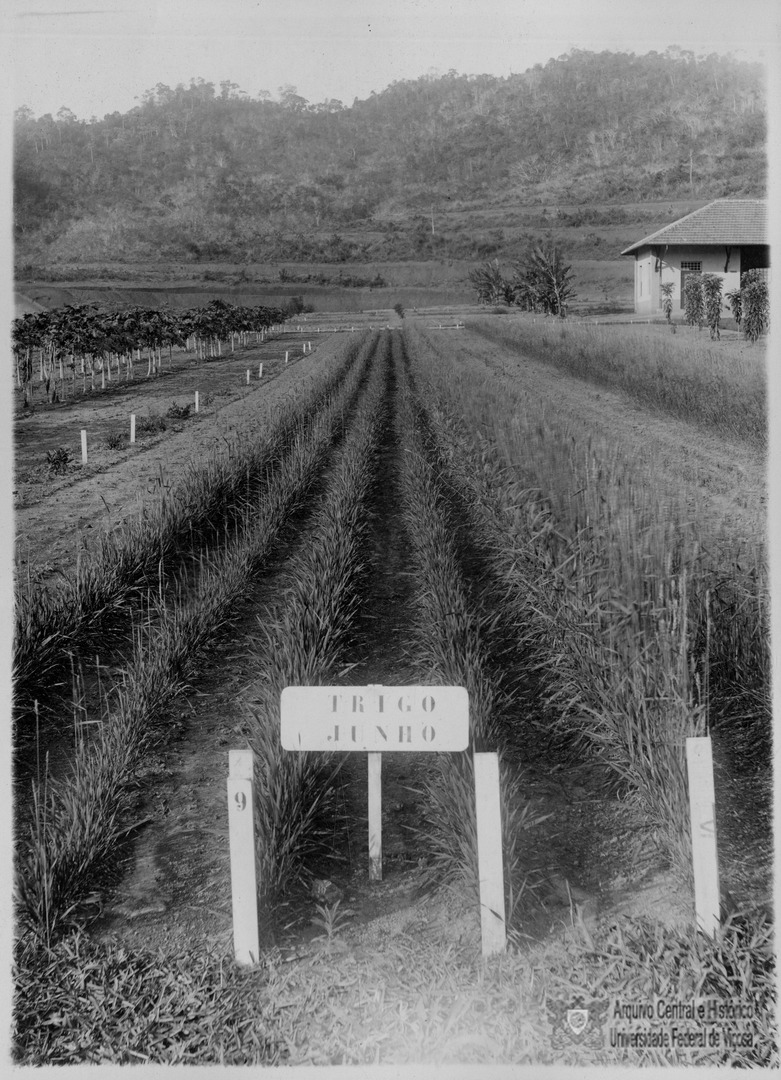 Plantação de Trigo em área experimental e ao fundo, Abrigo da Entomologia.