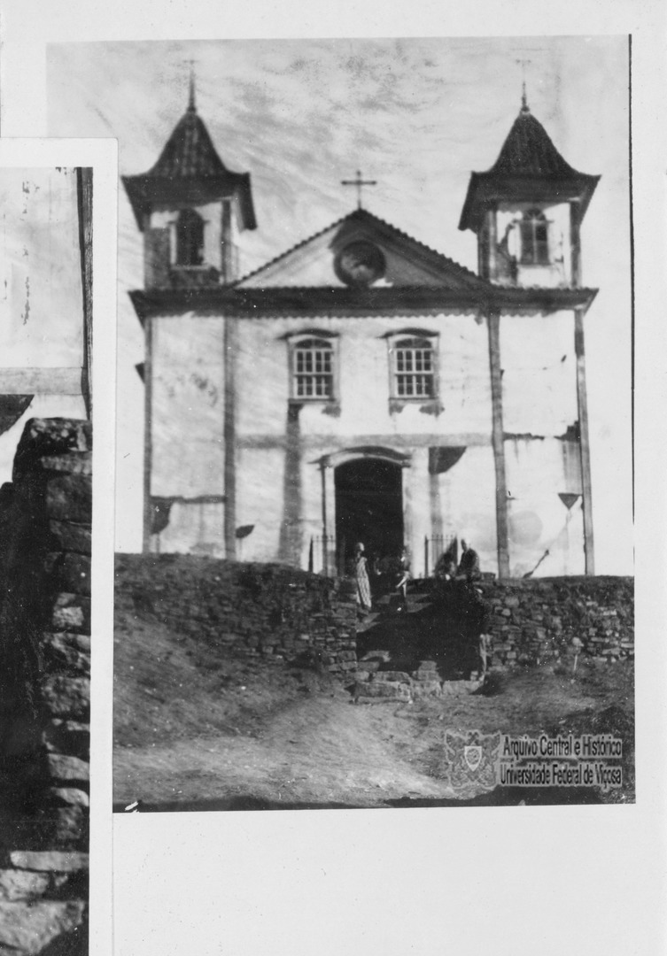 Peter Rolfs, Bello Lisboa e Effie Rolfs em frente a uma igreja não identificada (possivelmente fora de Viçosa).