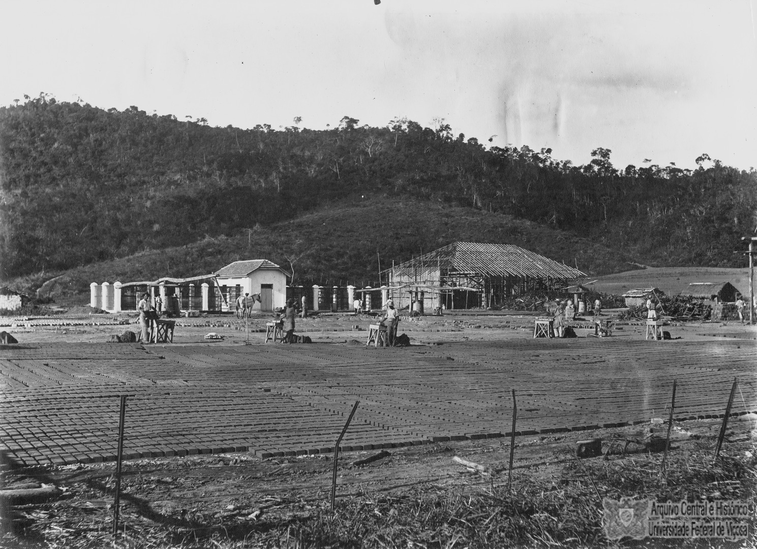 Operários trabalhando na construção de Ripado (viveiros) e Abrigo da Horti-Pomicultura.