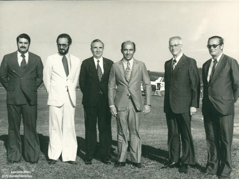 Recepção das autoridades que vieram participar das comemorações do dia do cinquentenário. Destacam-se na imagem: José Carlos Enrique de Olivera Begazo (terno branco) e o primeiro da direita: Cel. Léo Acir Ferreira de Sá Brito.