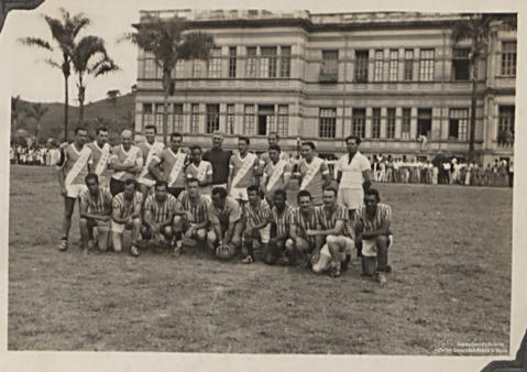 Time de futebol da Esav e equipe visitante após jogo realizado em 1928.