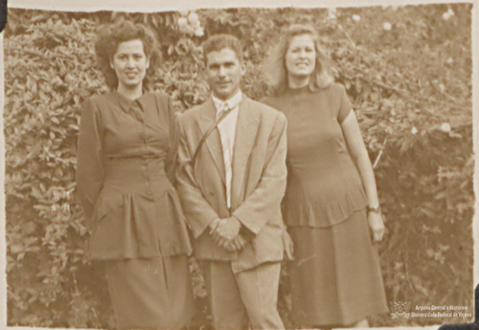 Marcondes ladeado por sua cunhada e por sua esposa.