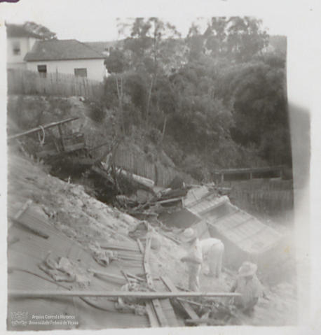 Vagão descarrilhado em um desastre ferroviário ocorrido em Viçosa.