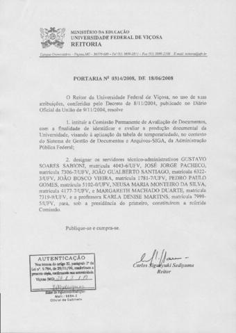 Institui a Comissão Permanente de Avaliação de Documentos (Cpad) da UFV.